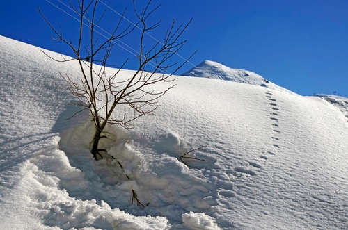 Eccellente inquadratura, l' albero è collocato sul terzo del fotogramma, diventando così un validissimo complemento nella scena. Ottima gestione del bianco, che in scene di questo tipo, se mal gestito, tende ad assumere delle dominanti cyan indesiderate su tutta l' area innevata. Sulle ombre a ridosso della pianta si percepiscono lievi dominanti cyan e magenta che, in ogni caso, non precludono la validità generale del fotogramma. A mio avviso si sarebbe dovuto intervenire in postproduzione per rimuovere i fili bianchi che attraversano la parte superiore della scena, operazione che si sarebbe potuta effettuare agevolmente con un intervento di pennello correttivo al volo nelle zone senza dettaglio e con un timbro clone facilmente utilizzabile vista l'abbondanza di materiale disponibile per ricostruire i rami e l' uniformità di colore del cielo. Nel complesso, in ogni caso, una bella foto. |