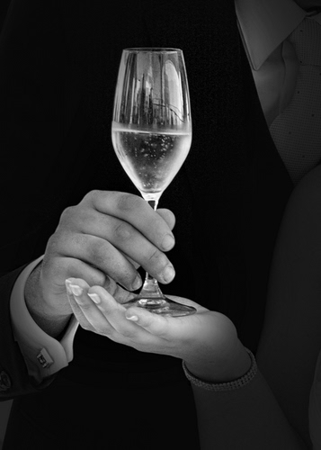 una delle foto che mi ha attirato per il soggetto, (aldilà della PP che qui non giudico) e per il bianco e nero quasi da carboncino e per il riflesso dell'ambiente nel bicchiere, ma voglio esprimere il mio modo di vederla e come l'avrei presentata e cioè eliminando la camicia dello sposo e la cravatta e i particolari grigi negli angoli in basso sia a destra che a sinistra, lasciando dunque solo polsi, mani e bicchiere, comunque i miei complimenti sinceri, gianni |