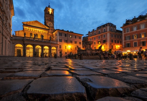 Altri tag (senza riscontro): pietre, strada, archi, nuvole, pavimento, lampione, roma, cielo, mattoni, torre, selciato, sampietrini, notturno.