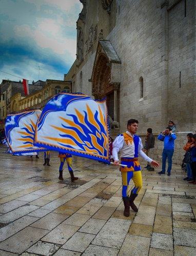 Bella per i colori (contrasto tra giallo e azzurro), per il "movimento", per il lucido del pavimento per la pioggia e l'atmosfera creata. |