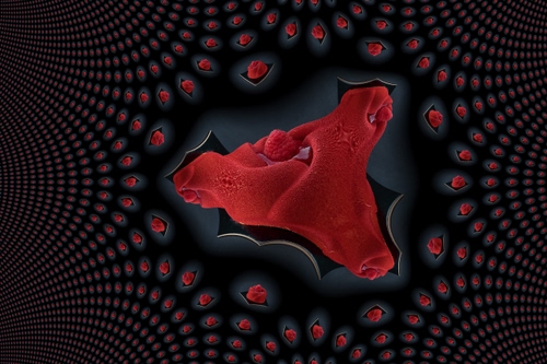 Essendomi intimamente rifiutato di fotografare cavolfiori, conchiglie,felci e piante grasse sono ricorso a quello che la computer grafica oggi ci offre. Il trucco? Ho usato Gimp alla voce filtri - mappa - traccia frattale e provando a giocare con i vari cursori disponibili. Per la cronaca sono partito da tutte foto di torte o di dolci. Questo in particolare è una monoporzione al lampone che sembra essersi trasformato in una Sicilia immaginaria ma si può vedere come era in origine osservando le infinite copie che si diffondono a ventaglio verso l'esterno. E' un esperimento divertente che consiglio a tutti. |