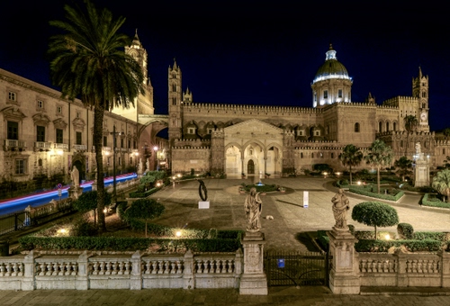 Altri tag (senza riscontro): castello, duomo, palermo, palma, notturna, cattedrale, monumento, campanili, campanile, piante, alberi.