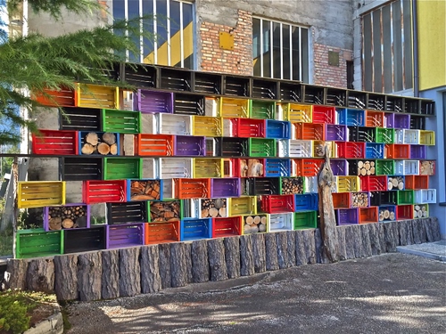 A Cles (TN) in valle di Non, la valle famosa per la produzione delle mele. Le cassette di legno sono i tipici contenitori con cui si trasportano le mele per la loro commercializzazione. ![]() |