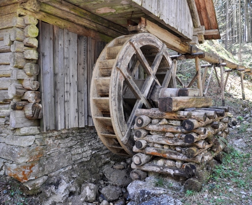 Altri tag (senza riscontro): baita, vecchio, sostegni, canaletta, verde, dettaglio, tavole, perno, porta, macina, tetto, rinvio, pali, farina, siccità, raggi, assi, gora, abbandono.