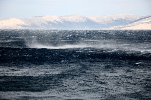 Grazie, qui siamo sulla costa croata, vicino alla cittadina di Senj, dove la bora forte soffia molto spesso, anche d'estate. Sullo sfondo c'e' l'isola di Krk |