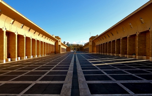 Altri tag (senza riscontro): costruzione, porticato, pilastri, giallo, finestra, portico, cortile, asfalto, sole, ombre, strada, mure, rettangoli, colonne, viale, case, quadri.