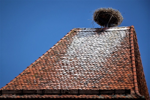 Adorabile. Nei paesi dell'est e in Germania avere un nido di cicogne viene considerato un porta fortuna, sono tanti i contadini che piazzano sul proprio tetto una struttura circolare (come in questo caso), sperando che una coppia possa fare il nido. Anche perché le cicogne tornano nello stesso nido ogni anno. ![]() |
