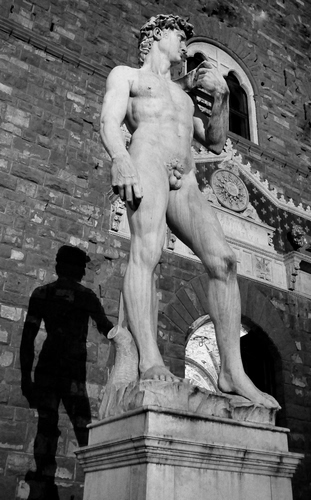 Altri tag (senza riscontro): copia, uomo, golia, antico, portone, arte, muro, bianco, replica, classicità, eroe, archi, fionda, pietra, buonarroti, facciata, monumento, david.