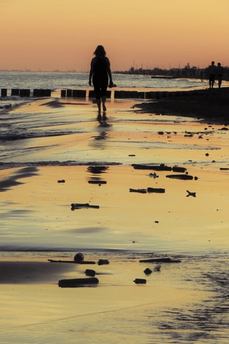 Altri tag (senza riscontro): riva, scalza, passeggiare, passeggiata, arancione, legno, cielo, riflessi, silouhette, passanti, orme, gambe, persona.
