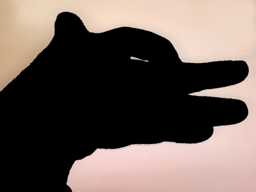 Grazie Bluanto, la foto originale non è proprio così, l'ombra non era venuta così nera, l'ho scurita successivamente... però l'immagine è realmente l'ombra prodotta dalla mia mano. |