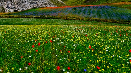 Continuo... Anche qui il primo piano è sfocato, nella parte alta manca il respiro (guarda le foto fra le prime 50, tutte quelle con i paesaggi hanno un pezzo del cielo). Mi viene spontaneo chiedere vedendo la foto: ma perché autore non ha alzato un po' la cam per segare primo piano sfocato, facendo vedere qualcosa sopra? Inoltre nella foto manca un punto di interesse che focalizzi lo sguardo - potrebbe esserlo il campo di fioritura viola e le rocce, ma essendo in ombra e tagliate, non svolgono bene la funzione. |