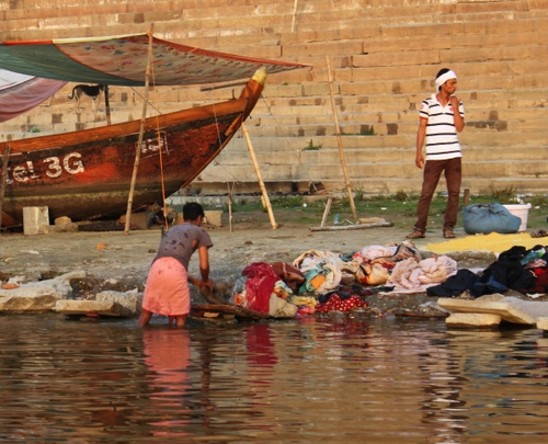 Slitta con panni da lavare nel Gange, a Varanasi.