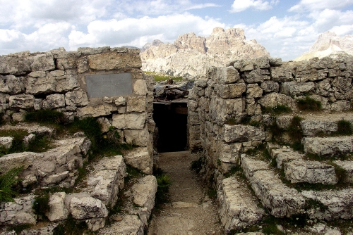 postazione di guerra - dolomiti venete - sullo sfondo il monte cristallo