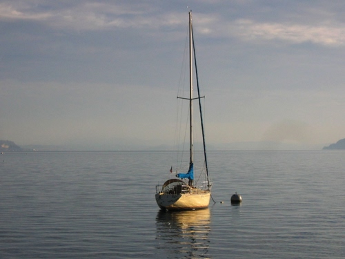 Barca all'ancora davanti a Suna (VB), sul lago Maggiore.