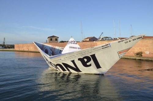 Ringrazio tutti per l’apprezzamento. Non è un fotomontaggio: è una scultura al largo dell’Isola di Certosa, nella Laguna di Venezia. |