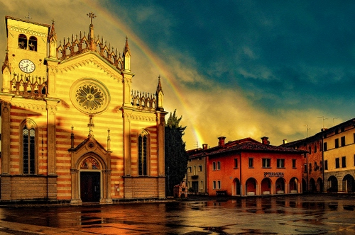 ciao Luisella, grazie del passaggio, la foto è di qualche estate fa, un agosto con i passaggi di alcuni forti temporali, c'era Caronte e poi anche Beatrice, l'aria era elettrica, la piazza deserta e l'arcobaleno. ![]() |