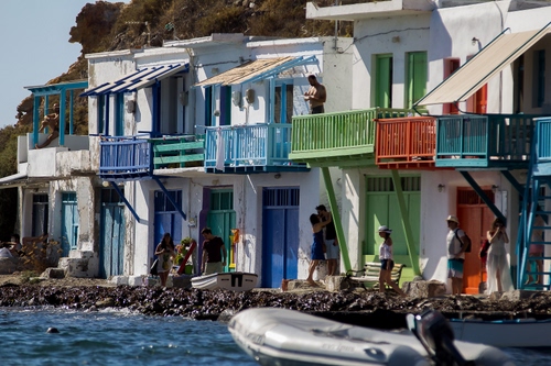Questa è un a foto scattata sull’isola di Milos ad Adamas durante le ferie estive 2018. A mio soggettivo giudizio, una delle più espressive foto che abbia mai scattato. E’ pura fortuna aver beccato un uomo che mangia uno Yoghurt in terrazza, un altro che contempla il mare, e fortune delle fortune una coppia che si bacia incastonati in questo scorcio pittoresco, ricco di vita, e di colori.