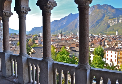 Vista sulla città di Trento dalla loggia del castello del Buonconsiglio.