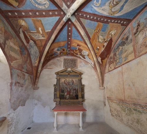 Altri tag (senza riscontro): antico, triangoli, bianco, medievale, chiesetta, malte, cripta, crociera, interno, iscrizione, restauro, arco, cupola, lapide, edicola.