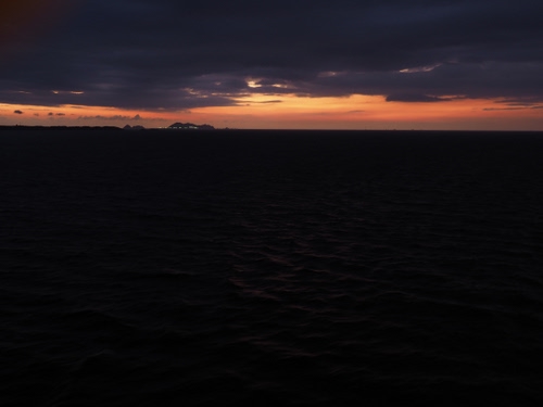 foto di un tramonto nell'oceano pacifico, ho evidenziato la striscia di luce fra il nero del mare e delle nuvole