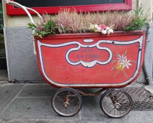 se non sbaglio la carrozzina è in piazza Ghiaia a Parma... l'ho fotografata anch'io un po' di tempo fa... |