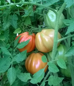 Pomodori "cuore di bue" dal verde al rosso coltivati da me nel mio orto.