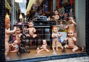 bambole in vetrina