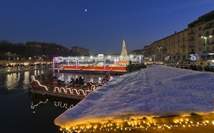 luminarie alla nuova darsena di Milano