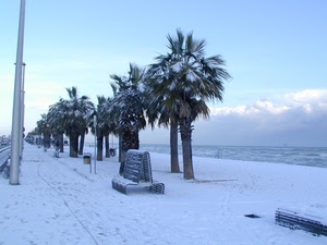 Panchine imbiancate. Lungomare di Porto Sant'Elpidio