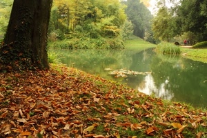 Mi piace molto, belle le foglie in primo piano, il laghetto e le persone piccole sul sentiero, complimenti.