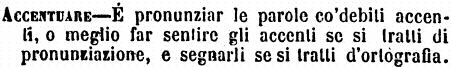 | Accentuare - E' pronunziar le parole co' debiti accenti, o meglio far sentire gli accenti se si tratti di pronunziazione, e segnarli se si tratti d'ortografia. [immagine] |