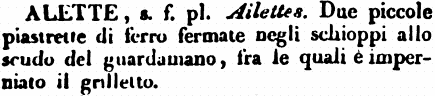 | Intrecciando le lettere di "alette" (*) con un'altra parola si può ottenere: cd * = caldette; pil * = paillette; pin * = palettine; pro * = parolette; pil * = piallette; * lias = allietaste; divo * = diavolette; glam * = gallettame; plin * = pallettine; scat * = scalettate. |