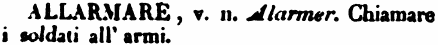 | Allarmare - v. n. Alarmer. Chiamare i soldati all'armi. [immagine] |
