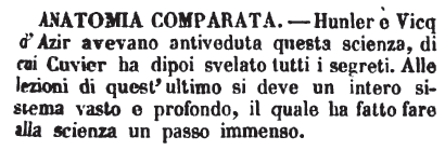 | Anatomia comparata - Hunler e Vicq d'Azir avevano antiveduta questa scienza, di cui Cuvier ha dipoi svelato tutti i segreti. Alle lezioni di quest'ultimo si deve un intero sistema vasto e profondo, il quale ha fatto fare alla scienza un passo immenso. [immagine] |