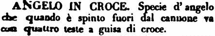 | Angelo in croce - Specie d'angelo che quando è spinto fuori dal cannone va con quattro teste a guisa di croce. [immagine] |