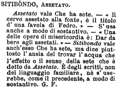 | Scartando le parti in comune (in coda oppure in capo), "assetato" si può ottenere dalle seguenti coppie: assetando/tondo, assetano/tono, assetante/tonte, assetasse/tosse, assetassi/tossi, assetaste/toste, assetasti/tosti. |