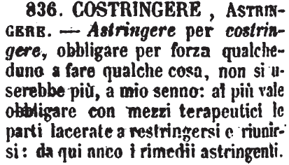 | Usando "astringere" (*) si possono ottenere i seguenti risultati: rea * = restringere. |
