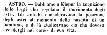 | Astro - Dobbiamo a Kleper la cognizione delle leggi che regolano il movimento degli astri. Gli antichi consideravano la posizione degli astri al momento della nascita di un bambino, e di là giudicavano ciò che doveva accadergli nel corso di sua vita. [immagine] |