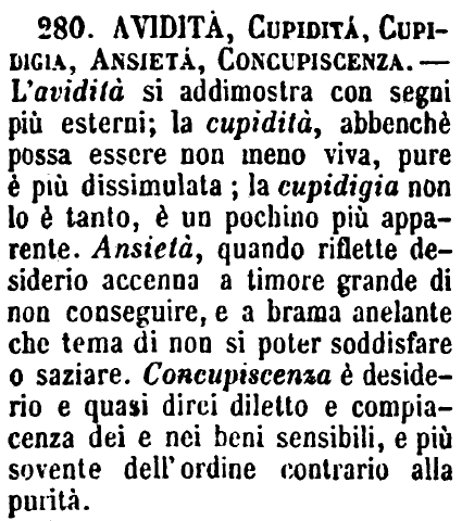 | Usando "avidità" (*) si possono ottenere i seguenti risultati: periva * = perdita; veniva * = vendita; sveniva * = svendita; valva * = validità; preveniva * = prevendita. |
