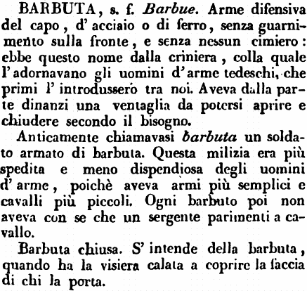 | Usando "barbuta" (*) si possono ottenere i seguenti risultati: * tale = barbule; * taccia = barbuccia; * tagliare = barbugliare. |