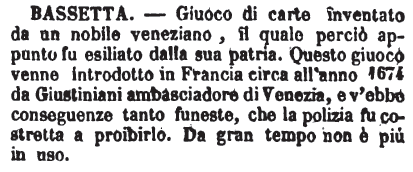 | Usando "bassetta" (*) si possono ottenere i seguenti risultati: * settata = basta; * settati = basti; * settato = basto; cibasse * = città; tubasse * = tutta; cobas * = cosetta; roba * = rossetta. |