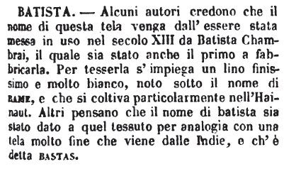 | "batista" si può ottenere intrecciando le lettere delle seguenti coppie di parole: bis/atta. |
