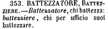 | Usando "battezzatore" (*) si possono ottenere i seguenti risultati: * retore = battezzare; * aviatore = battezzavi. |