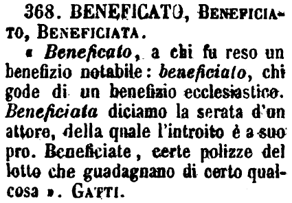 | Usando "beneficato" (*) si possono ottenere i seguenti risultati: * otre = beneficare. |