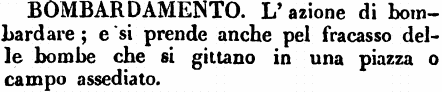 | Bombardamento - S. m. (Mil.) Lo stesso che Bombardazione. Voce dell'uso. (Mt.)