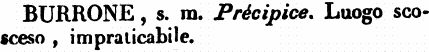 | Burrone - s. m. Précipice. Luogo scosceso, impraticabile. [immagine] |