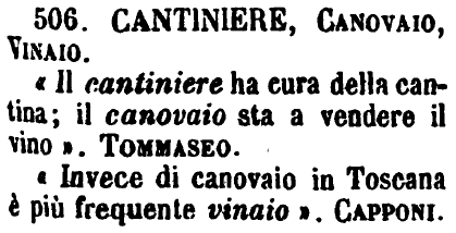 | »» Vedi anche la pagina frasi con cantiniere per una lista di esempi. |