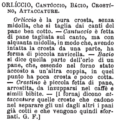 «Cantuccio in Toscana e altrove dicesi l'orliccio del pane». Tommaseo. [immagine] |