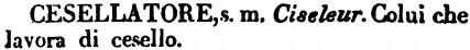 | Usando "cesellatore" (*) si possono ottenere i seguenti risultati: * torere = cesellare. |