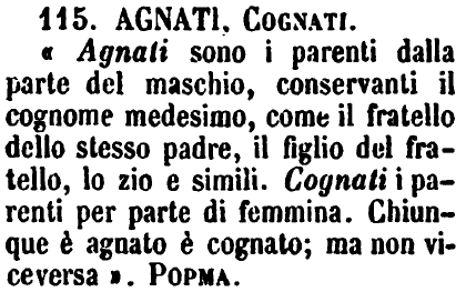 | Usando "cognati" (*) si possono ottenere i seguenti risultati: cicogna * = citi; guascogna * = guasti; baco * = bagnati; buco * = bugnati; seco * = segnati; vico * = vignati; indico * = indignati; impreco * = impregnati. |